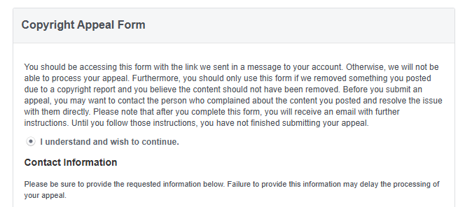 Đánh dấu vào ô: ☑️ My content was removed due to a complaint of copyright infringement...